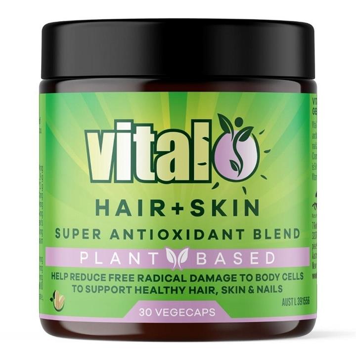 Vital Hair + Skin Super Antioxidant Blend reduces free radicals formed in the body and their damage to body cells to support healthy skin, lustrous hair and strong nails.