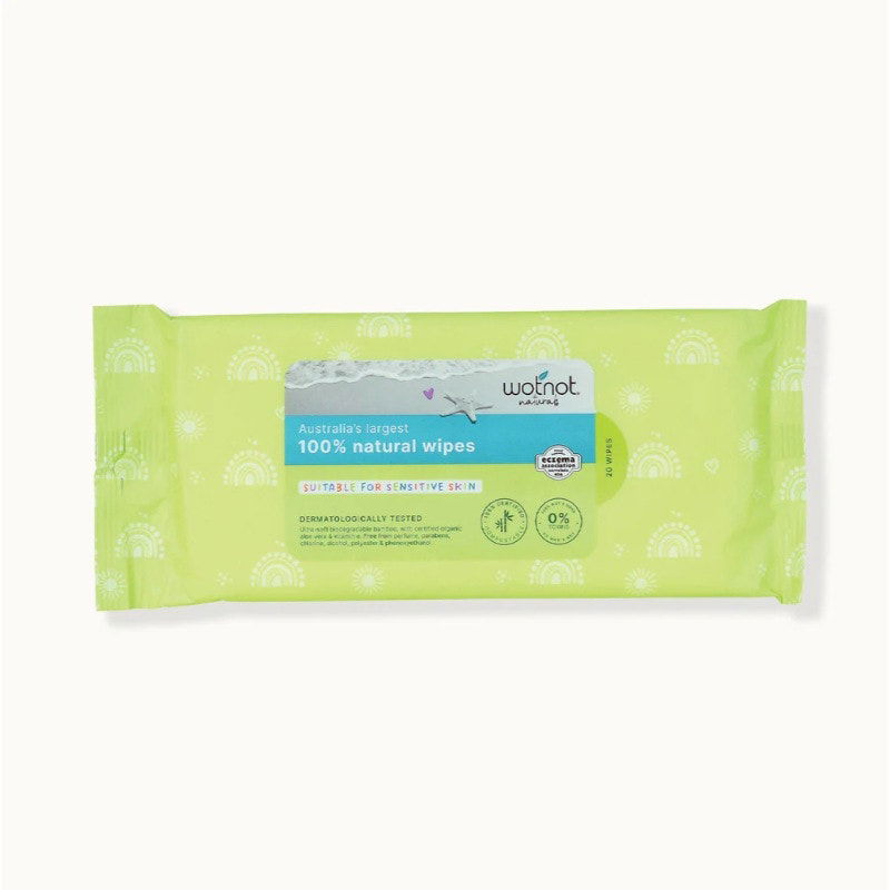 Enriched with natural vitamin E and Australian certified organic aloe vera to moisturise and nourish, Wotnot eco baby wipes gently cleanse without stripping natural oils.