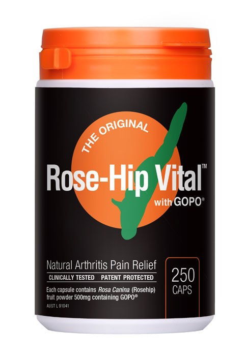 Rose-Hip Vital™ (Rosa Canina L), is the only product in Australia which tests for the patented compound Galactolipid (GOPO®), and is backed by over 30 clinical and scientific trials unique to Rose-Hip Vital. Sourced from 100% pure and natural rosehips for the symptomatic relief of the pain of Arthritis, Osteoarthritis (OA) and Rheumatoid Arthritis (RA), the product is shown to be well tolerated by all users.