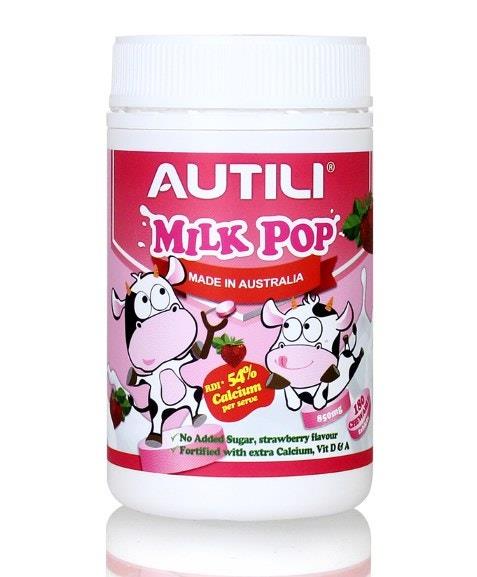 Autili Milk Pop 850mg chewable tablets are available in original (vanilla), strawberry and paw paw flavours your kids will love and deliver a perfect blend of good taste of creamy milk and delicious flavours. It can be simply taken on the go and offers great nutritional support for growing bodies that need to refuel throughout the day.