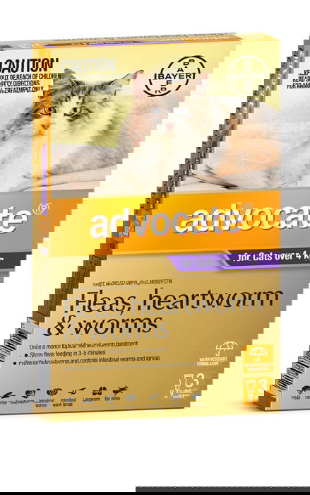 Advocate, a patented combination of Imidacloprid (from Advantage) and Moxidectin, is a break-through in the treatment of parasites in cats. Advocate treats, protects against and prevents the major parasites of your pet, inside and out.