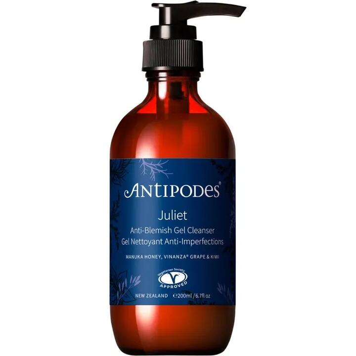 Antipodes Juliet Anti Blemish Gel Cleanser uses gently exfoliating botanical extracts and Manuka Honey to deeply cleanse skin and combat blemishes. Skin looks and feels brighter and clearer with reduced pigmentation and oils.