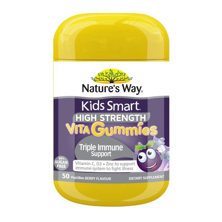 Nature's Way Kids Smart High Strength Vita Gummies Triple Immune Support contains the powerful combination of immune support hero ingredients: Vitamin C, Vitamin D3 and Zinc to support a healthy immune system to fight illness.