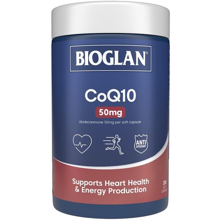 Bioglan CoQ10 50 mg - Contains Coenzyme Q10, an antioxidant that supports general wellbeing and energy production. 200 soft capsules.
