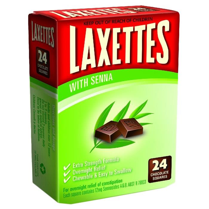 Laxettes Chocolates are used for the treatment of constipation and are the only chocolate laxative on the market and are available in packs of 24 and 48 easy to consume squares. Laxettes contain Senna which is recognised as one of the most popular and reliable natural laxatives.