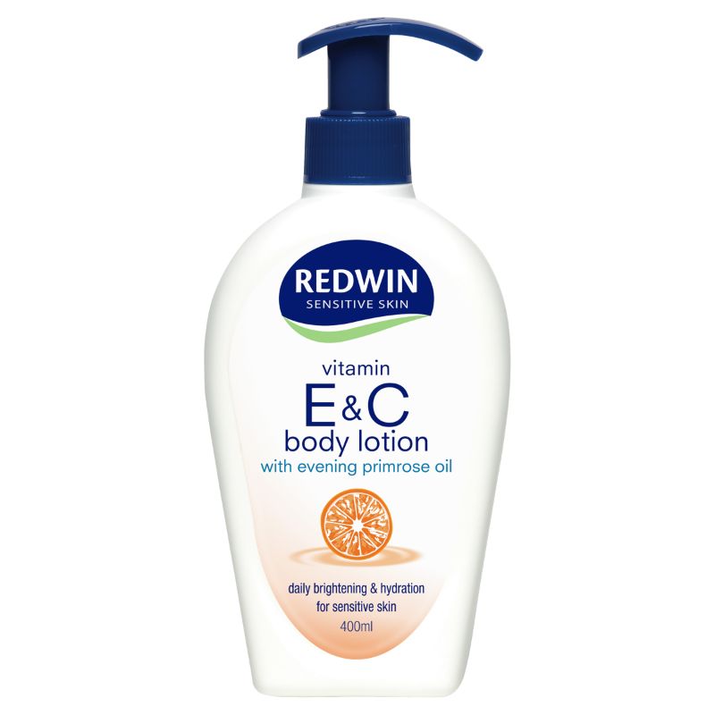 Redwin Vitamin E & C with evening primrose oil is a daily body lotion for brightening and hydration. Suitable for sensitive skin.