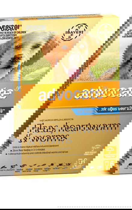 Advocate, a patented combination of Imidacloprid (from Advantage) and Moxidectin, is a break-through in the treatment of parasites in dogs. Advocate treats, protects against and prevents the major parasites of your pet, inside and out.