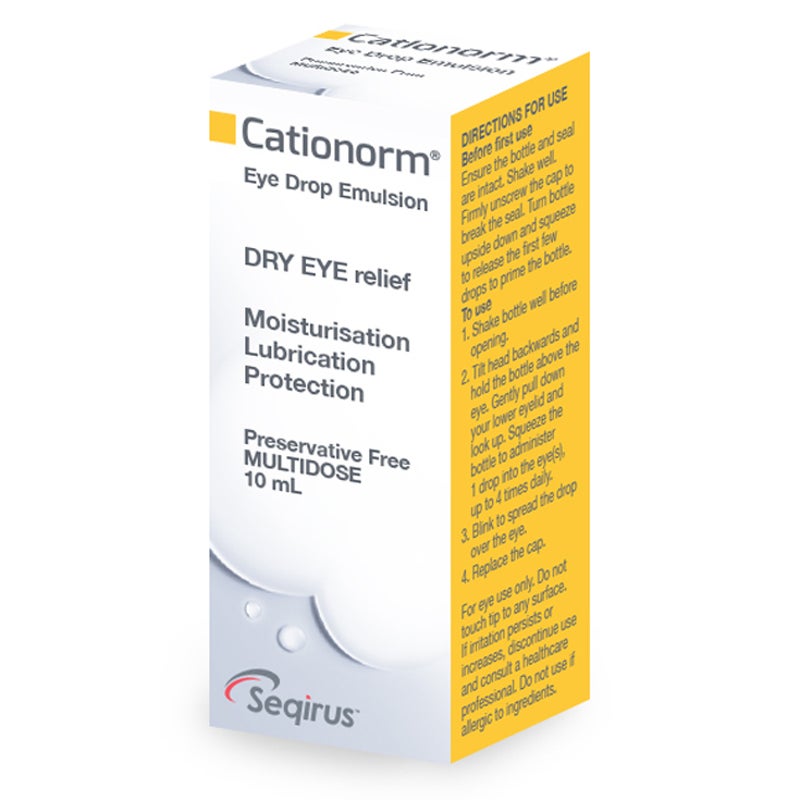 Cationorm is a hydrating & lubricating substance which protects the ocular surface and relieves discomfort due to dry eye.