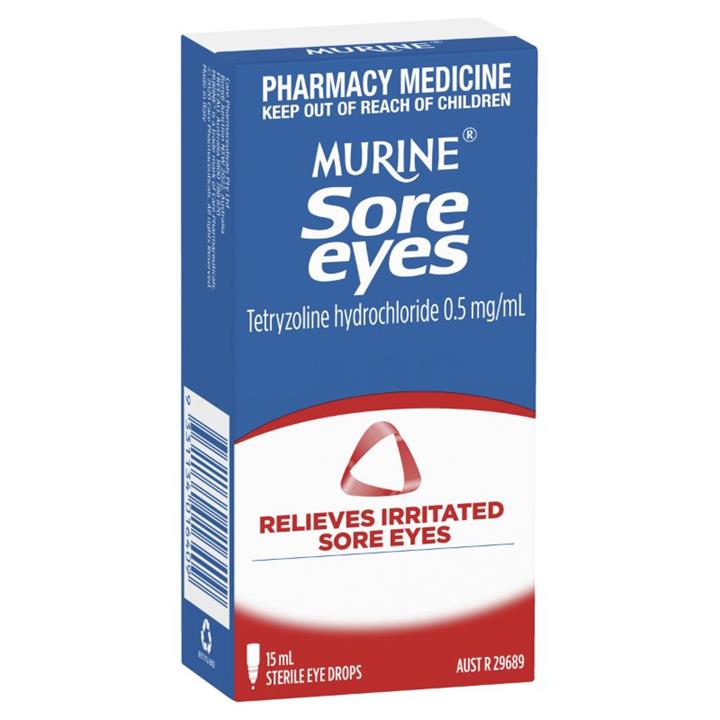 Murine Sore Eyes 15ml relieves irritated sore eyes. Relieves burning eyes and strained eyes.