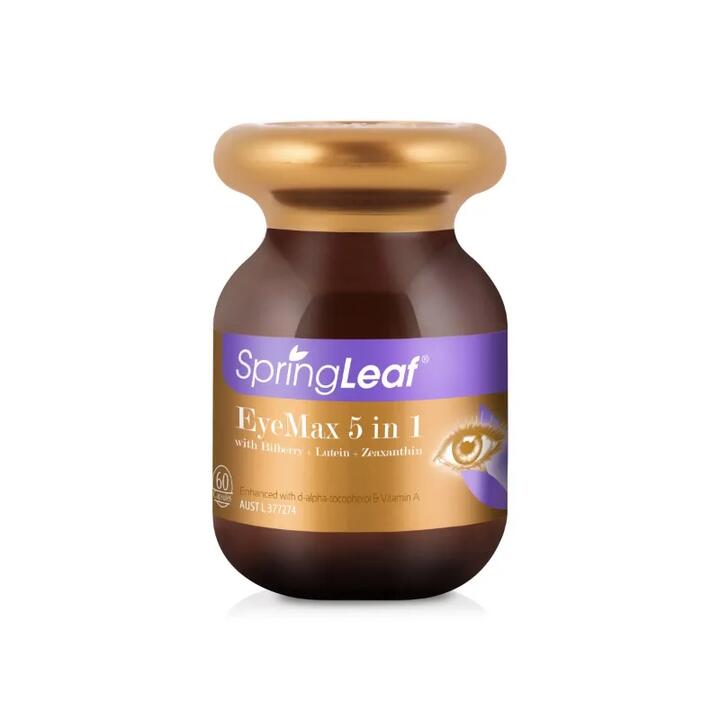 SpringLeaf EyeMax 5 in 1, enhanced with Bilberry, Lutein, Zeaxanthin, d-alpha-tocopherol & Vitamin A, is an advanced 1-a-day formula to help maintain eye health and function, along with retina and macula health and function.