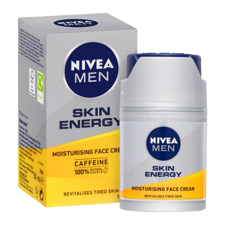 NIVEA MEN Active Energy Moisturiser cares for men’s skin intensely without leaving any residue. Made with quality energising ingredients, such as 100% Naturally Sourced Caffeine and Vitamin+ Complex, this face cream works to hydrate and refresh the skin. It fights signs of tiredness and provides long lasting vitalisation to provide healthy looking skin. The fast-absorbing, non-sticky formula helps improve skin condition and instantly provides the skin with refreshing moisture. Simply apply all over your face and neck, avoiding the eye and lip areas. The skin compatibility of this revitalising face cream has been dermatologically approved.