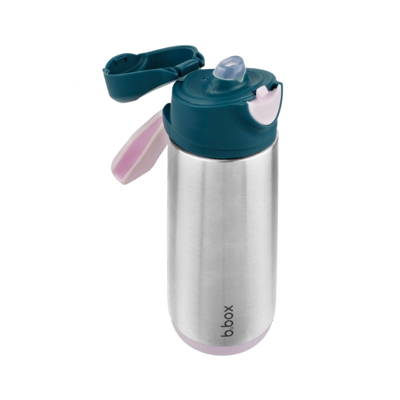 B.Box Insulated Sport Spout Bottle 500ml - Indigo Rose - Take thirst quenching to the next level with our indigo rose insulated sport spout bottle. Offering easy flow drinking from a soft silicone spout and double-walled, stainless steel insulated bottle to keep drinks cool for up to 15 hours and warm for up to 8 hours. Now that’s what we call all-day hydration! Cool blue and light pink drink bottles are leak-proof when the lid is closed, rest assured no more soggy bags or library books! Simply press the button to open. Soft silicone spout stays covered, clean, and hygienic. The silicone strap handle lets kids easily carry their bottles, and pull them out of school and sports bags. And the sleek design appeals to older kids too. Wide opening for easy fill (and refill) with liquid and ice cubes. 500ml/16.9oz capacity. Dishwasher safe, top rack only.