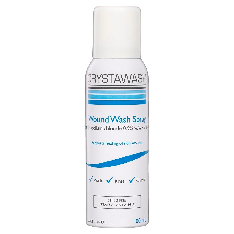 Crystawash Wound Wash Spray is a sterile non-medicated irrigation spray that supports healing of skin wounds without stinging.