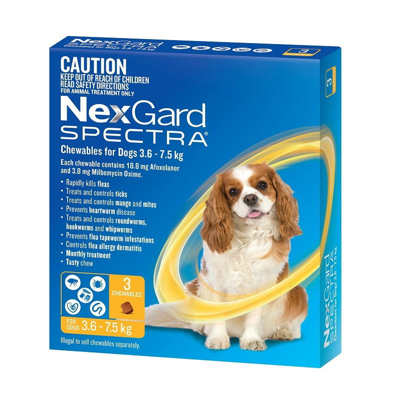NexGard Spectra delivers the most complete protection from fleas, ticks, heartworm and intestinal worms available, in one monthly chew. At the end of a 3 month Australian field study, 100% of owners reported that NexGard Spectra was well received by their dog. It is easy to give with or without food, whichever is most convenient for you. NexGard Spectra is not affected by bathing, swimming or shampooing – unlike some sprays, spot-on formulations or collars.