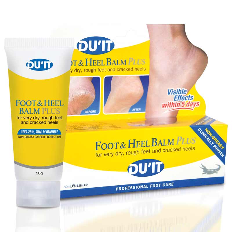 Du'It Foot & Heel Balm Plus is a heel balm with a triple action formula, containing anti-microbial properties to heal the most stubborn cases of dry, rough, cracked and irritated skin.