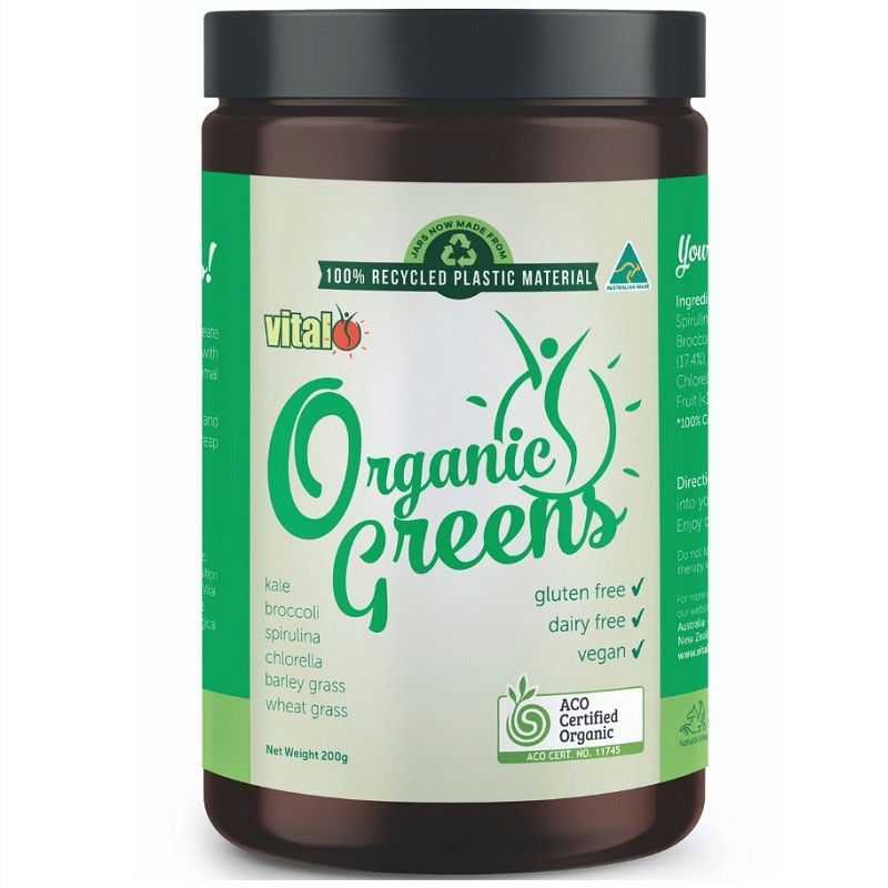 Introducing Vital 'Organic Greens', a simple formulation of 6 Greens containing Kale, Broccoli, Spirulina, Chlorella, Barley Grass and Wheat Grass.
