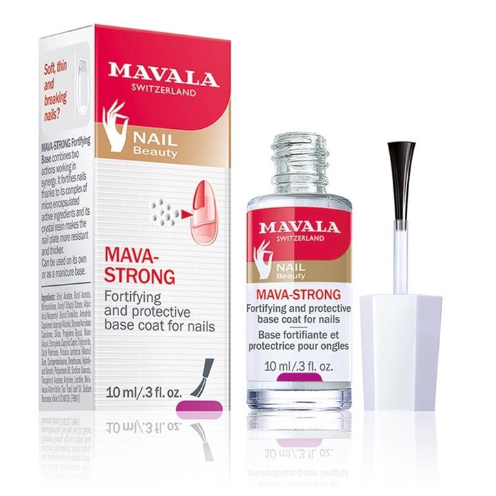 Mavala Mava-Strong Fortifying & Protective Base Coat 10ml allows splitting, soft, thus breaking nails to regain their normal and strong aspect. It combines two actions working in synergy : fortifying and protecting. It is a colourless and shiny nail polish whose active ingredients combining technicality and efficiency to improve nails' quality, reinforce their structure. Its complex of micro encapsulated active ingredients (tea tree essential oil, vitamin E, hydrolysed vegetable proteins and arginine) fortifies nails and its crystal resin makes the nail plate more resistant and thicker.