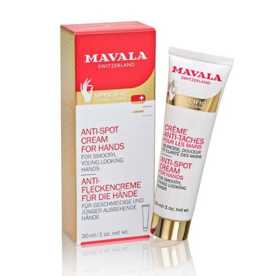 Mavala Anti-Spot Hand Cream 30ml tones down and prevents any pigmentary anomalies due to age and photo ageing. It's complex of 7 certified organic Swiss Alpine plants (mallow, mint, alchemilla, primrose, veronica, melissa, and achillea) help lighten skin and reduce the colour intensity and the size of existing pigmentary spot while preventing the appearance of new ones. The combination of an ultra-performing derivative of highly concentrated Vitamin C reinforces this action and provides its antioxidant and protecting benefits, restoring youth and suppleness to the skin. After a few weeks, spots will visibly diminish, and pigmentary imperfections tone down. Hands will be smoother and moisturized. Light and non-greasy, this cream easily penetrates and leaves a protecting film on the skin.