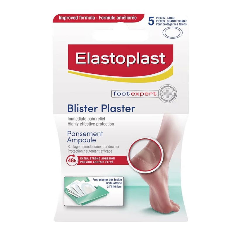 The Elastoplast Blister Plaster is specially designed to aid recovery of large blisters on the feet, ankles, heels, and soles. This plaster is made from firm fitting hydrocolloid material that protects blisters from further rubbing and infection while speeding up the healing process.