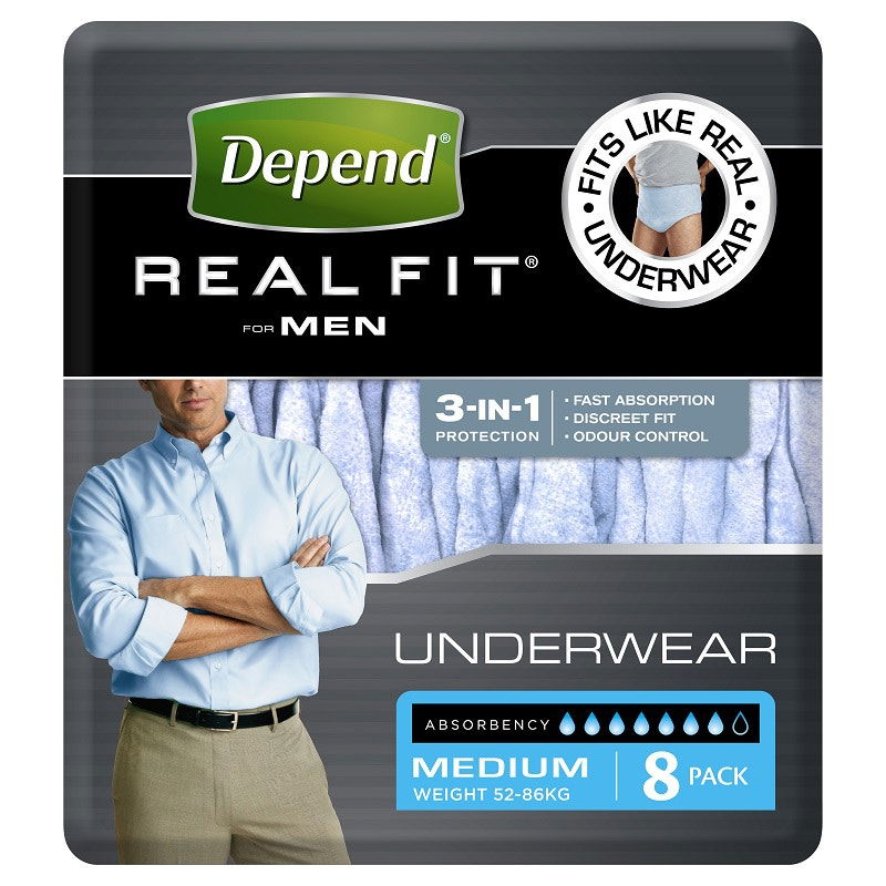 Depend Real Fit Underwear for Men Medium X 8 (Limit 4 per order)
