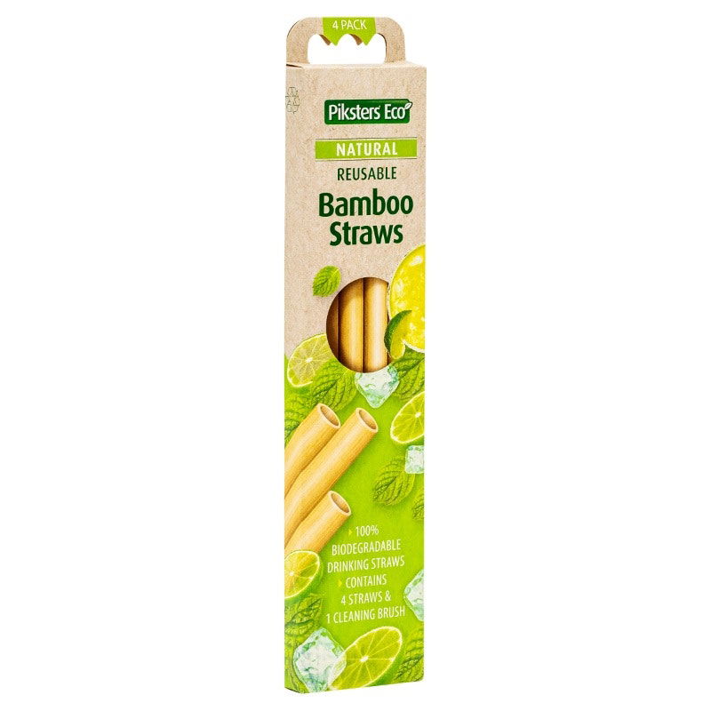 Piksters Eco Bamboo Straws are re-useable, 100% biodregadable, 100% natural. Pack contains 4 straws and 1 straw cleaner.