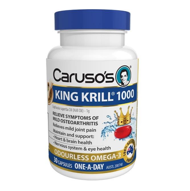 Caruso’s King Krill 1000 is a convenient source of Omega-3 Fatty Acids, providing 1000mg of krill oil in each capsule. Krill oil is extracted from the Antarctic krill species Euphausia superba which is a rich source of Omega-3 Fatty Acids.