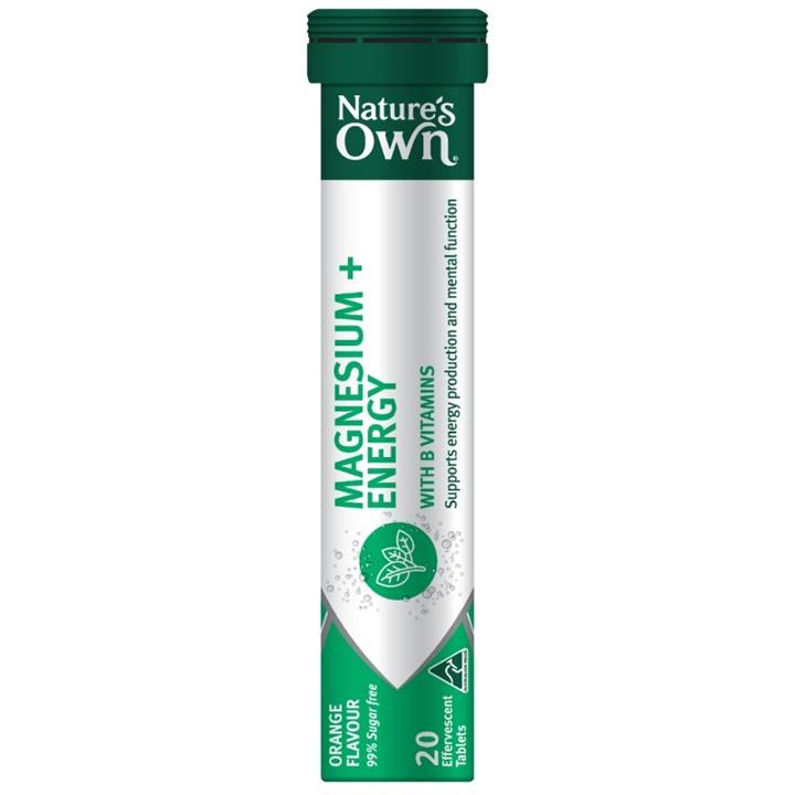 Nature's Own Magnesium + Energy is a great tasting, orange flavoured drinkable vitamin. It contains a combination of Magnesium, B Vitamins, Herb and Caffeine in a convenient 1-A-DAY dose.