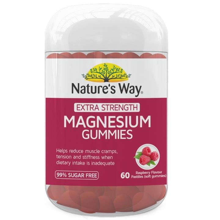 Nature's Way Extra Strength Magneisum Gummies are a delicious and easy-to-take magnesium supplement to support muscle health and nervous system function. Combined with the benefit of Vitamin D3 as a co-ingredient, Magnesium and Vitamin D3 work together to support muscle and bone health. Vitmain D3 also supports muscle function when sun exposure is inadequate. Magnesum can also help to relieve mild muscle pain, cramps, spasms and stiffness when dietary intake is inadequate.
