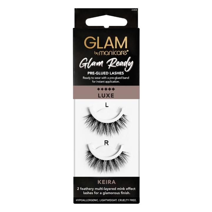 Glam By Manicare pre-glued lashes are ready to wear without the need to apply lash adhesive. Featuring a cushioned and lightweight band with glue for comfortable wear and effortless application in seconds. Simply press on lashes and go! From a natural finish to a dramatic lash effect. Glam By Manicare has lashes to suit every occasion.