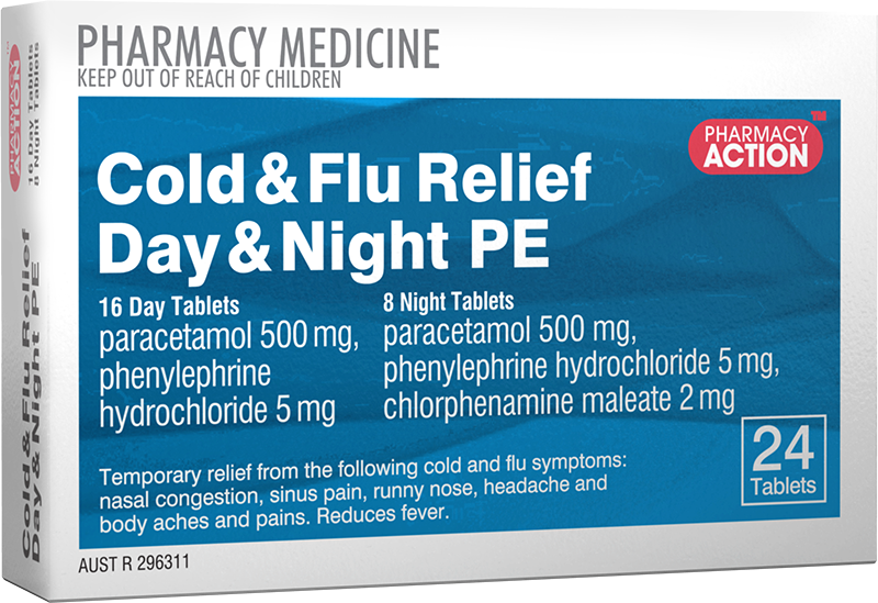 Buy Pharmacy Action Cold & Flu Relief Day & Night PE Tablets online at Chemist Direct!