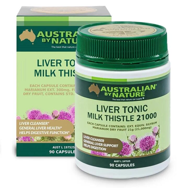 Australian by Nature Liver Tonic contains 150mg of silybin, the active hepatoprotective substance derived from milk thistle.
