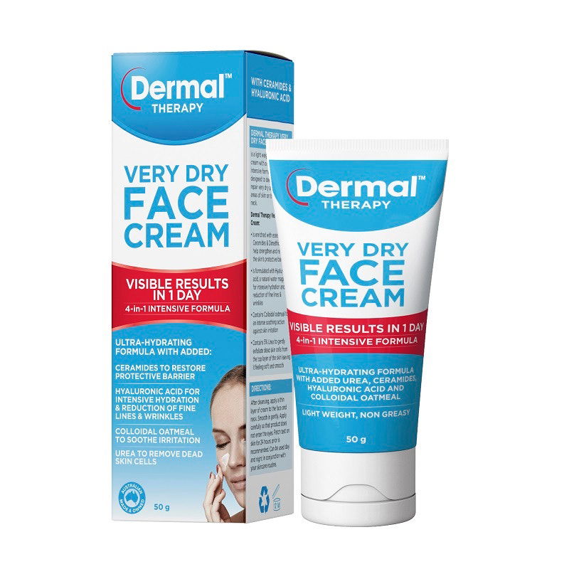 Dermal Therapy Very Dry Face Cream is a lightweight, nongreasy cream with a unique 4-in-1 intensive formula specifically designed to deeply nourish and repair very dry and sensitive areas of skin on the face and neck.