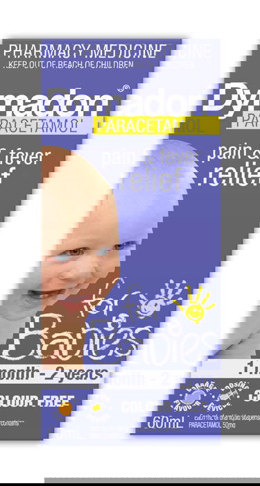 Dymadon for babies is a great tasting, orange or strawberry flavoured, colour-free oral liquid suspension formulated for children.