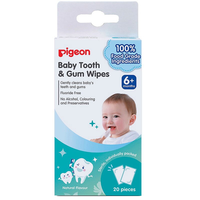 Pigeon Baby Tooth & Gum Wipes provide oral hygiene for baby's early stages. Sterilised, individual sachets to gently clean baby's teeth and gums.