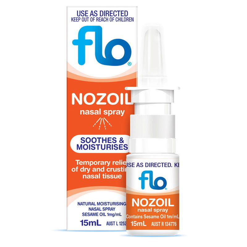 Flo Nozoil Nasal Spray 15ml moisturises nasal tissues to prevent dryness and crusting.