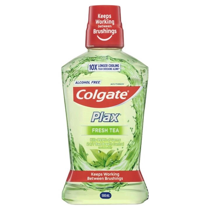 Colgate Plax Mouthwash Fresh Tea:fights plaque and bacteria for up to 12 hours. Protects gums and its gentle alcohol-free formula is suitable for sensitive mouths, cleaning even the hard to reach places. Has a mild and refreshing taste, giving long lasting fresh breath.