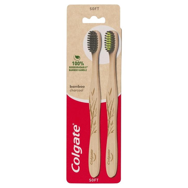 Colgate Bamboo Charcoal Toothbrush with soft bristles features is made from sustainably grown bamboo and features a 100% biodegradable* handle.
