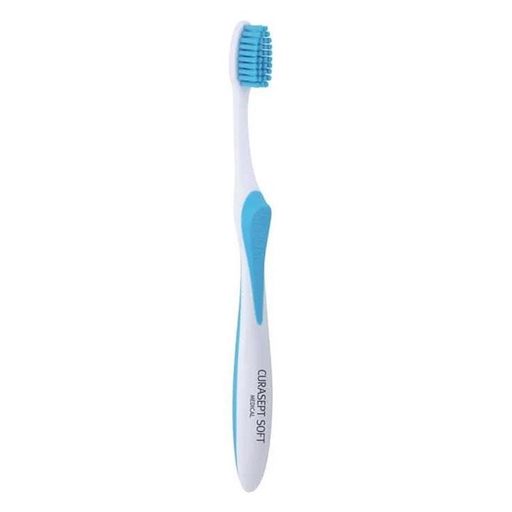 The Curasept SoftTouch Medical toothbrush has in excess of 5000 bristles only 0.10mm in diameter. The longer head of this unique toothbrush distributes the brushing load over a wider brushing area compared to a short head toothbrush thereby offering an even more delicate and efficient cleaning action. The force applied to the very delicate areas of the mouth is spread widely and thus offers an even more delicate and efficient action. Designed and 100% manufactured in Italy to the highest quality standards