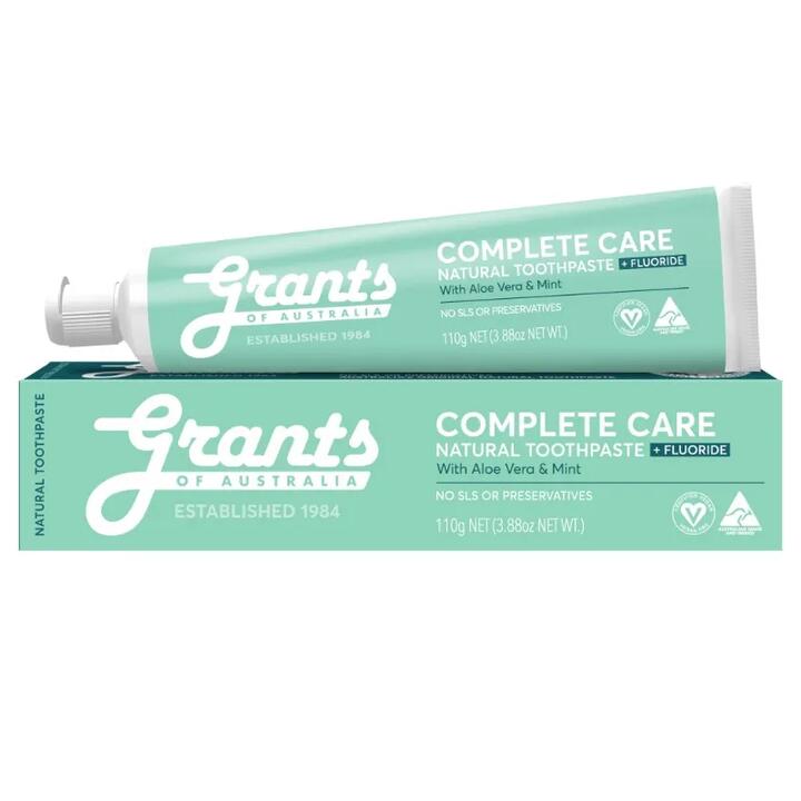 Grants Complete Care is a multi-benefit toothpaste that provides all day protection for your teeth and gums. With fluoride to help fight cavities and prevent tooth decay, Aloe Vera to soothe gums and a fresh spearmint flavour to freshen breath. Clean, soothe and protect your teeth while enjoying the benefits of natural herbs for gentle oral care. It’s everything you need in a toothpaste! Use day and night.