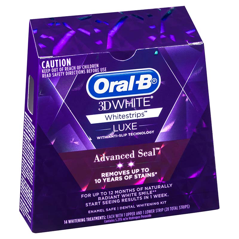 - ORAL-B 3D WHITE LUXE Whitestrips Advanced Seal with ANTI-SLIP TECHNOLOGY REMOVES UP TO 10 YEARS OF STAINS in 2 weeks.