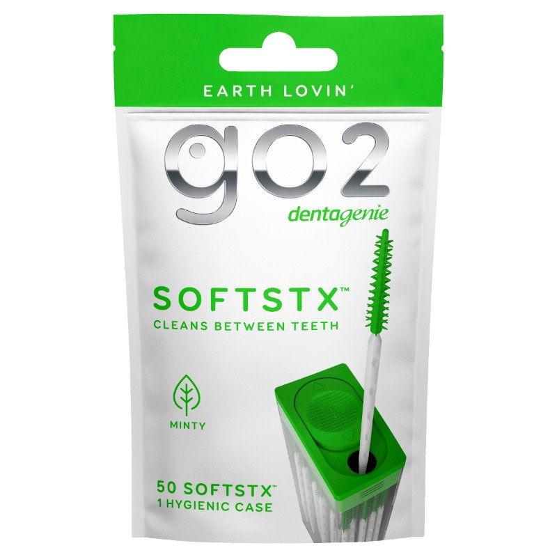 GO2 Dentagenie Softstx - Cleans between Teeth. Earth Lovin'. Minty flavour. 50 Softstx, 1 Hygienic Case for convenience on-the-go