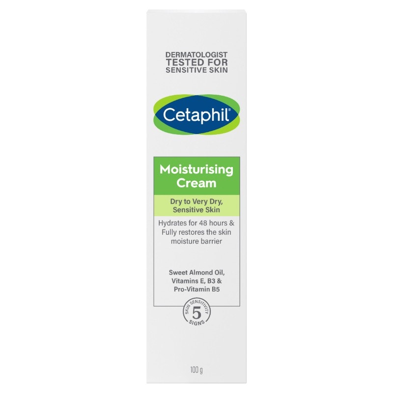 Cetaphil Moisturising Cream intensely hydrates for 48 hours to help restore your skin’s moisture barrier. Enriched with Sweet Almond Oil and Vitamin E, this rich and nourishing moisturiser is ideal for dry to very dry, sensitive skin.