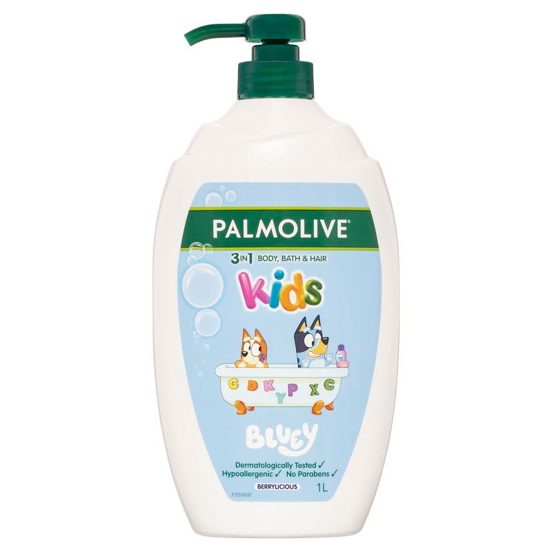 Palmolive 3 in 1 Kids Bluey Body, Bath & Hair is dermatologically tested, hypoallergenic and does not contain parabens.