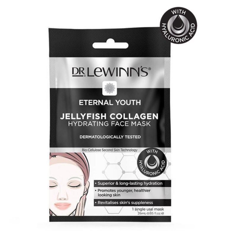 Eternal Youth Jellyfish Collagen Hydrating Face Mask is a luxurious mask using Bio-Cellulose technology which allows the mask to adhere perfectly to the face, acting like a second skin for an instant and continuous moisture surge. Loaded with a highly potent serum containing Jellyfish Extract, which is rich in Collagen protein to strengthen the skin's barrier, Juveleven peptide and Hyaluronic Acid to boost skin's moisture, improve skin suppleness and promote younger, healthier looking skin.
