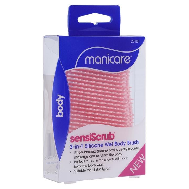 The SensiScrub™ 3-in-1 Silicone Wet Body Brush is made with finely tapered silicone bristles that gently cleanse, massage and exfoliate the body. The massaging nodes stimulate circulation to prepare the skin to help with mosturiser, serum and mask absorption.