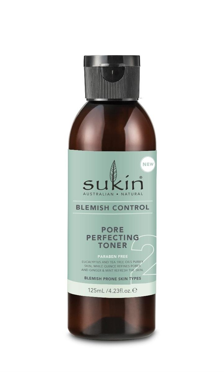 Sukin Pore Perfecting toner features Eucalyptus and Tea Tree Oils to purify the skin, whilst Quince refines pores and limits skin shine.