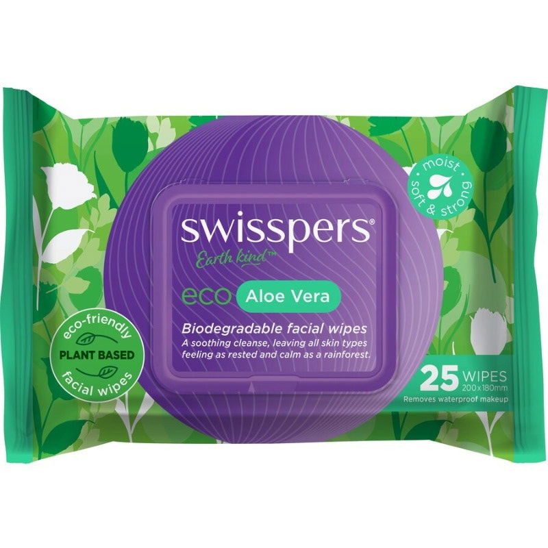 Swisspers Eco Aloe Vera Biodegradable Facial Wipes X 25