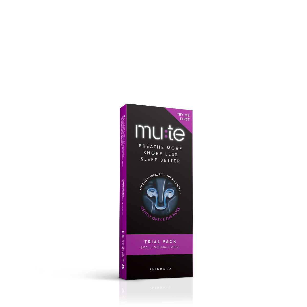 Mute is a new technology developed by a team of specialists to alleviate the severity and incidence of snoring and improve your quality of sleep. Mute fits snugly into your nose while gently and comfortably dilating your nostrils as you sleep to help stop snoring. Made from ultra-soft medical grade polymers, Mute increases the volume of air travelling through the nose during sleep, encouraging nasal breathing and may alleviate congestion – factors critical to help stop snoring and a better quality of sleep. The mute started pack comes with a smallem edium & large size for you to find your perfect fit.