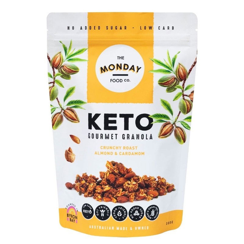 The Monday Food co. Keto Gourmet Granola Crunchy Roast Almond & Cardamom is the perfect combination of nuts and seeds with a hint of cinnamon.