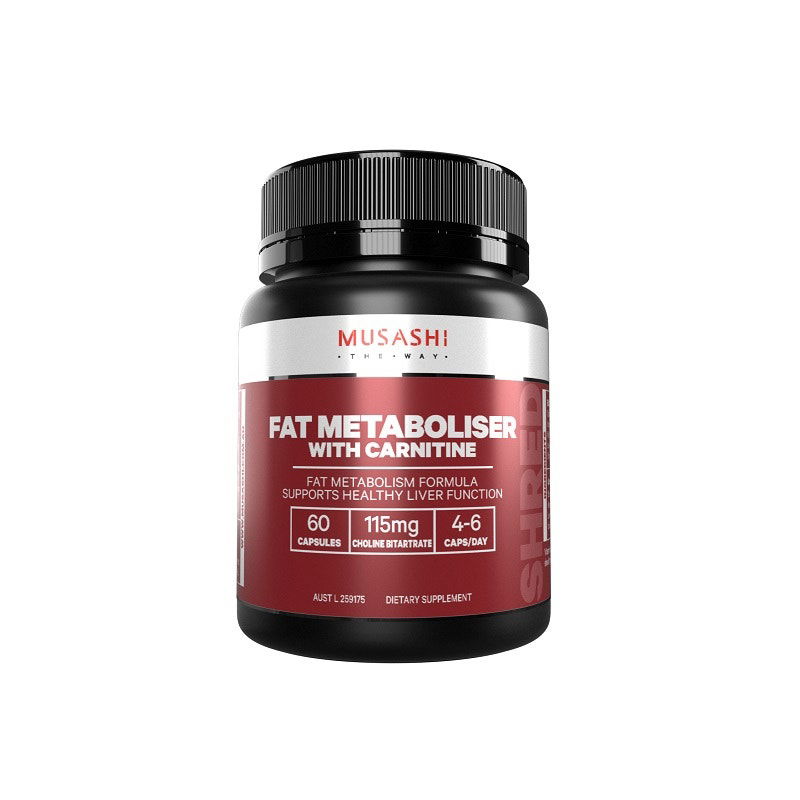MUSASHI FAT METABOLISER with CARNITINE has been developed to assist the metabolism of stored fat when used in conjunction with a healthy diet and active lifestyle.